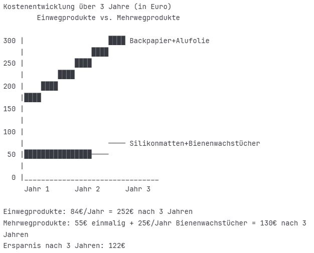 | Dauerbackfolie | 8€ | 1-2 Jahre | 4-8€ | Minimal |