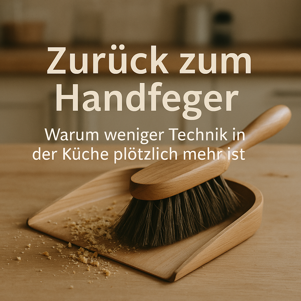 Markus hat übrigens inzwischen auch seine Meinung geändert. Anfangs war er skeptisch und meinte, der Handfeger sei ein Rückschritt. Mittlerweile ist er es, der ihn am häufigsten benutzt, vor allem nach dem Kochen, wenn auf der Arbeitsplatte und dem Boden Reste liegen. Neulich sagte er: „Eigentlich ist das wie mit dem Messer – manchmal ist ein gutes, einfaches Werkzeug besser als eine elektrische Küchenmaschine." Damit hat er nicht ganz unrecht. Viele moderne Geräte sind für spezielle Aufgaben konzipiert, aber im Alltag braucht man oft etwas, das universell einsetzbar und unkompliziert ist.